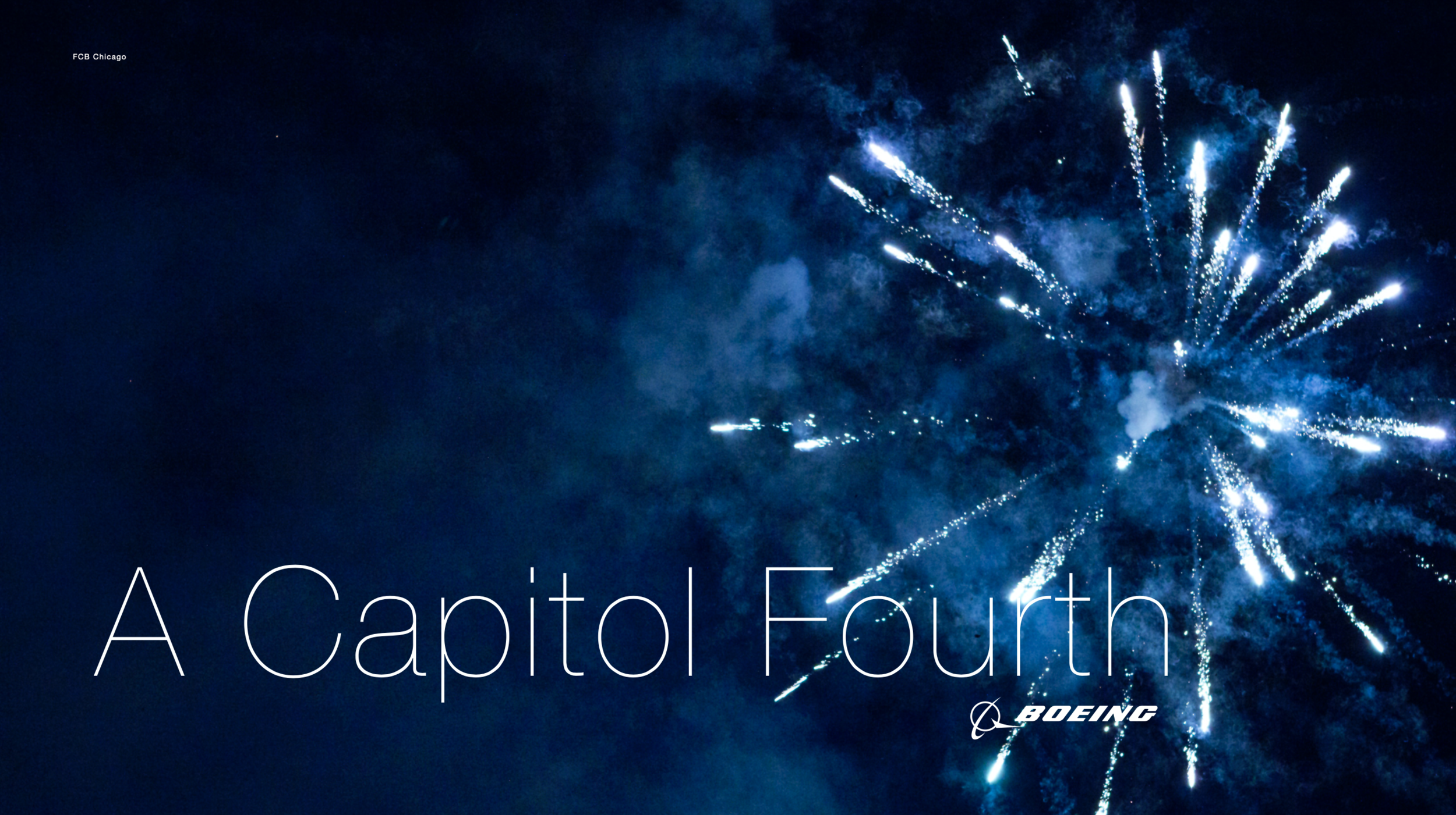 While at FCB I worked within the Beoing team to art direct this spot in the classic Boeing POV of looking up with hope—this time at fireworks in the sky. People are seen around the country illuminated, and united, by colorful lights from fireworks.