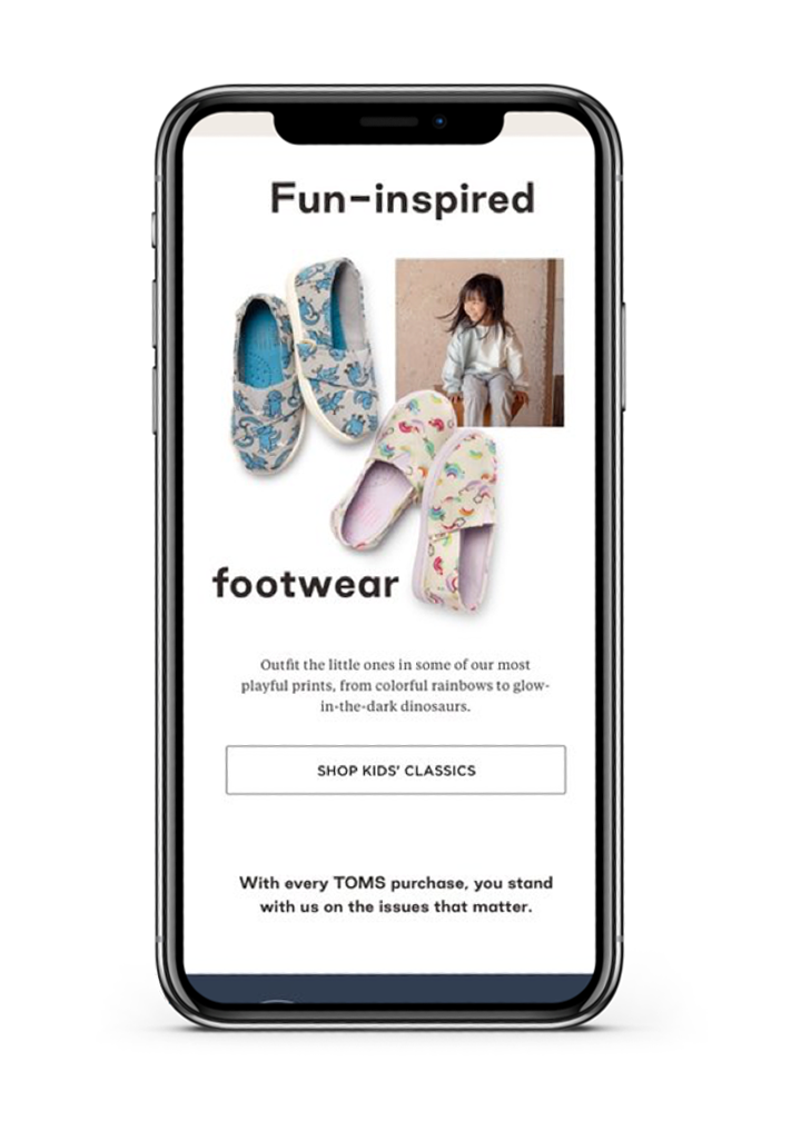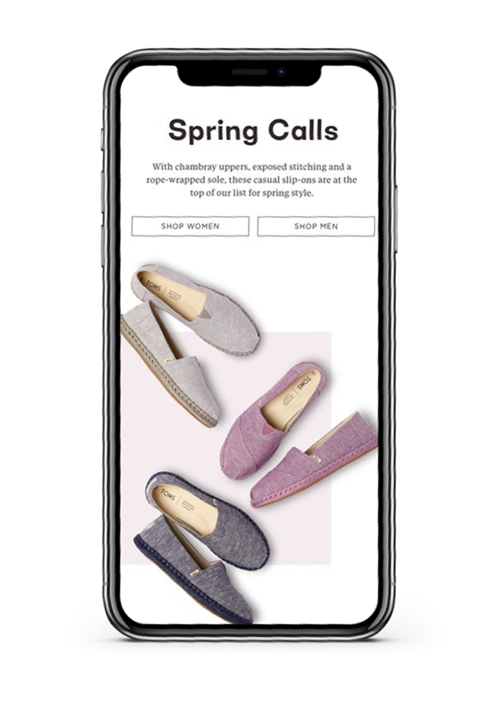 I worked at TOMS Shoes on a freelance basis, primarily on email campaigns. Roles included art direction and design for weekly digital assets, including email, site, and marketing.